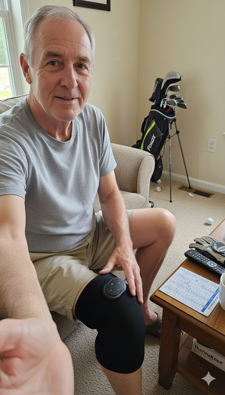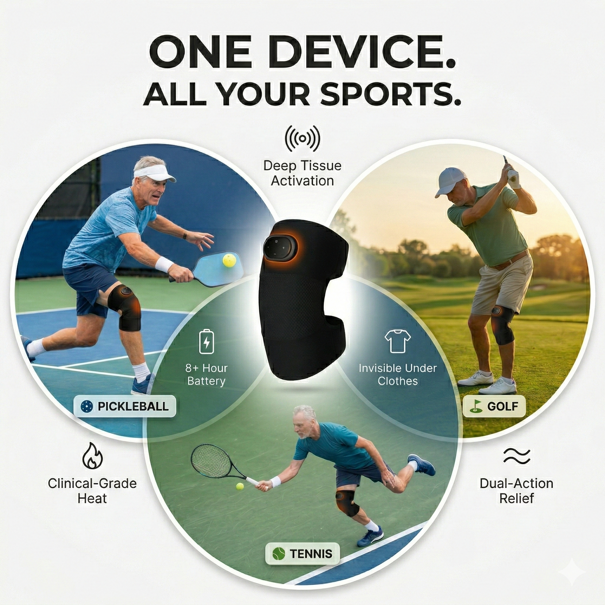 Absolutely! The ThermaKnee is designed for both recovery and active use. Many golfers wear it during their pre-round warm-up, and pickleball players use it between matches. The adjustable Smart-Strap design stays secure during movement without restricting your swing or footwork.