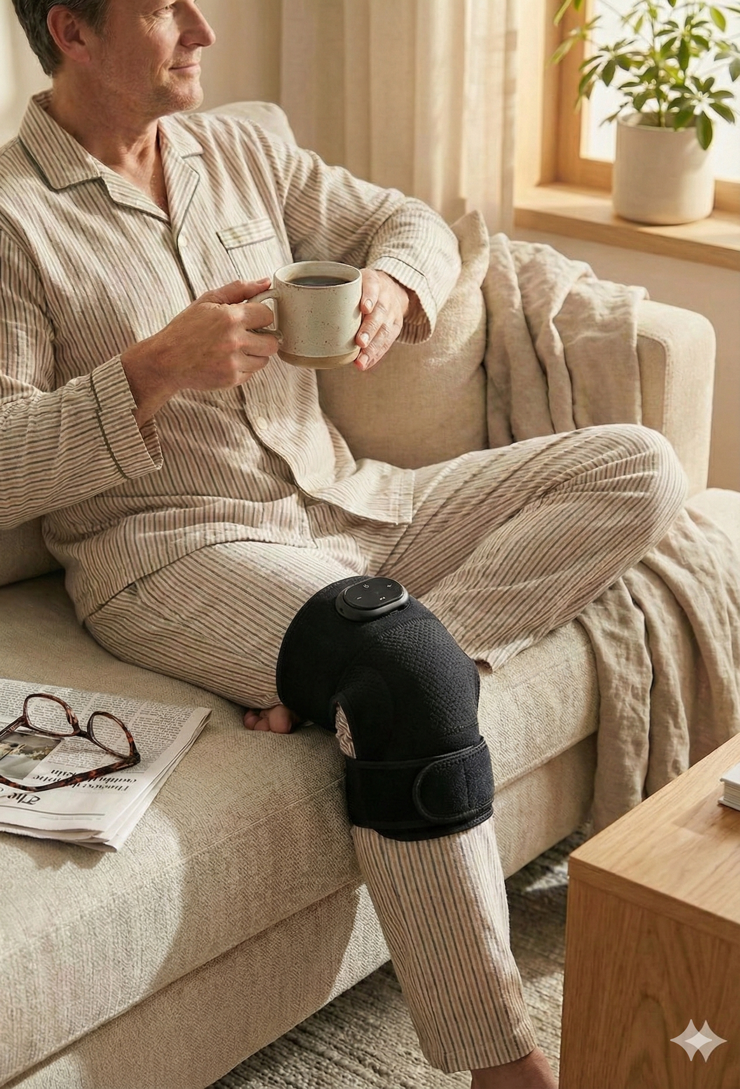 Stiff when you roll out of bed? Strap it on for 10 minutes while you drink your coffee. The heat loosens the "rusty hinge" feeling so you can start your day moving freely.